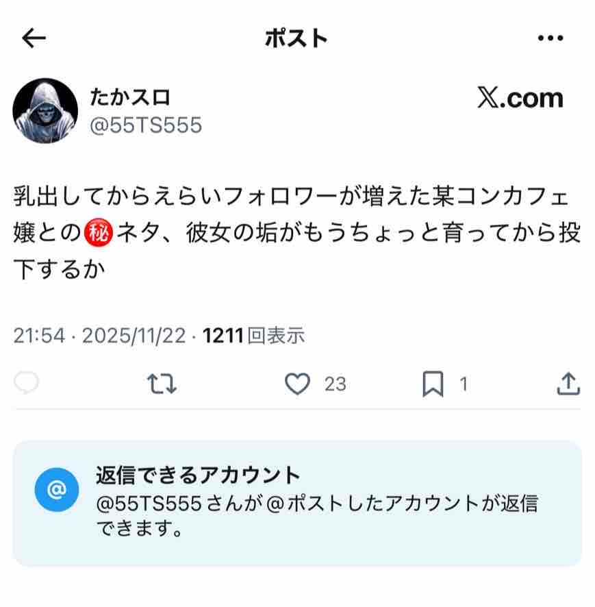 — ぁぉぃ🪼【パチスロバーはぐるま】 (@iixxx1234) November 29, 2025