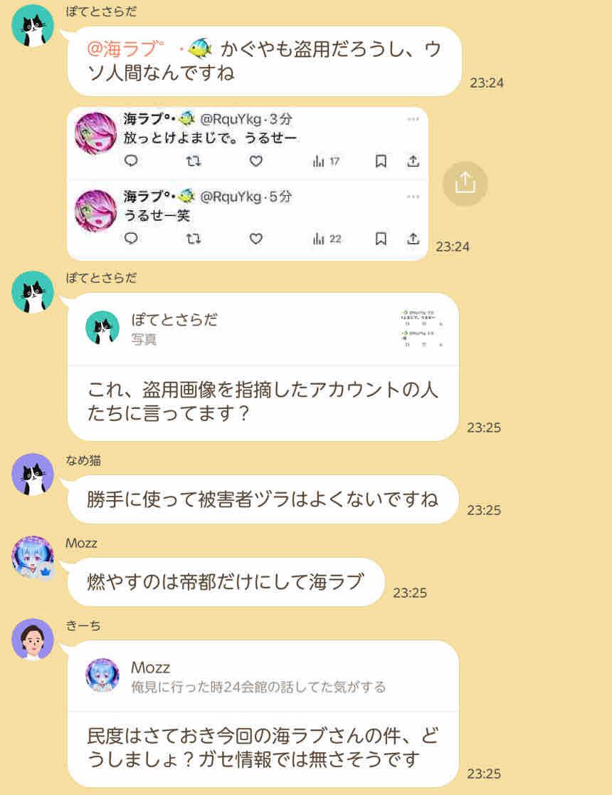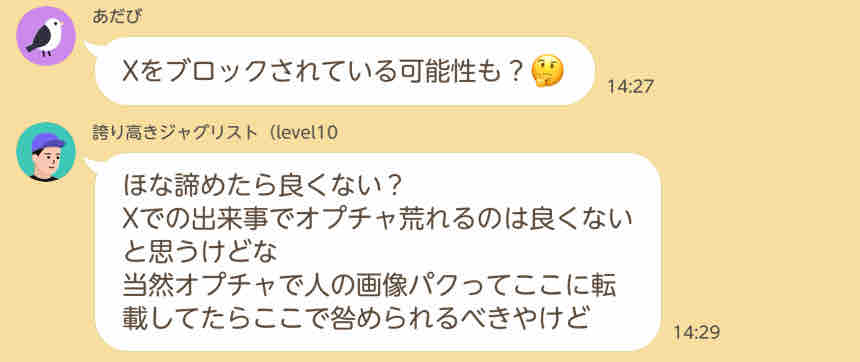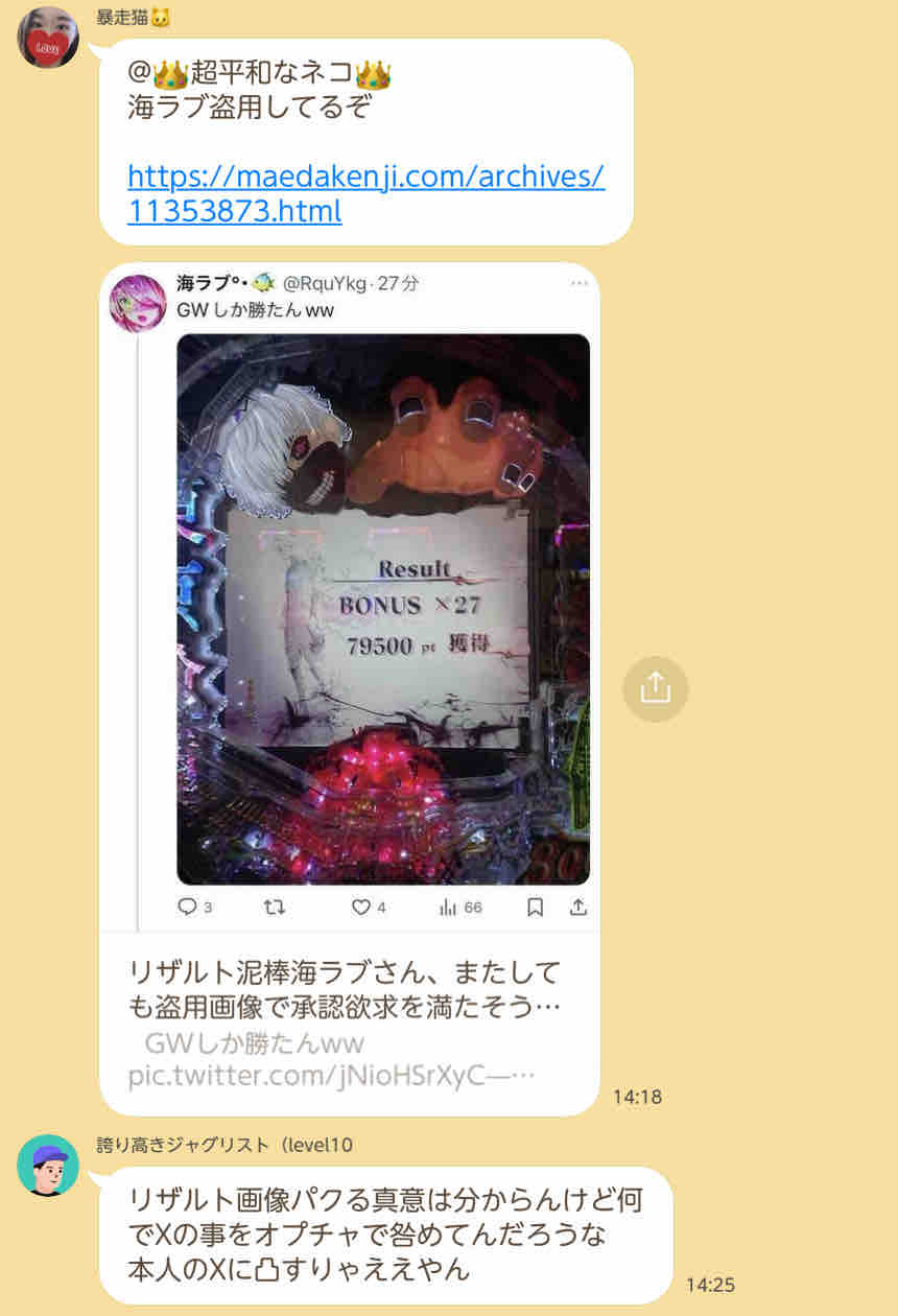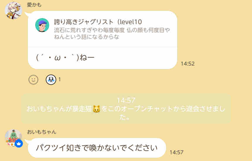 海ラブ保護オプチャの管理人さん、パクツイ如きで喚かないでくださいと、盗用を責めた方を強制退会にしてしまう 2025年08月13日 カテゴリ:LINEオープンチャット まずは海ラブ保護オプチャの管理人がパクツイ如きで喚かないでくださいと、盗用を責めた方を強制退会にしてしまうシーンをご覧ください↓↑パクツイ如きって……やられた方の気持ちも何も考えないんですかね?まあそんな人間だから海ラブを保護してるんでしょうけど😩時系列で見ると↓まあどう見ても酷い管理人ですね🤮面白い 「パクツイ」おもしろギャグ-ジョーク 漢字 ぱくつい 文字入り TシャツX-0 : 可愛いかっこいいオリジナル文字 パクツイ と面白い服、可愛い手紙、アパレル面白い面白い 「パクツイ」おもしろギャグ-ジョーク 漢字 ぱくつい 文字入り 長袖TシャツX-0 : 可愛いかっこいいオリジナル文字 パクツイ と面白い服、可愛い手紙、アパレル面白い タグ :#LINEオープンチャット