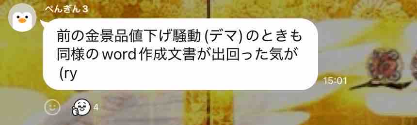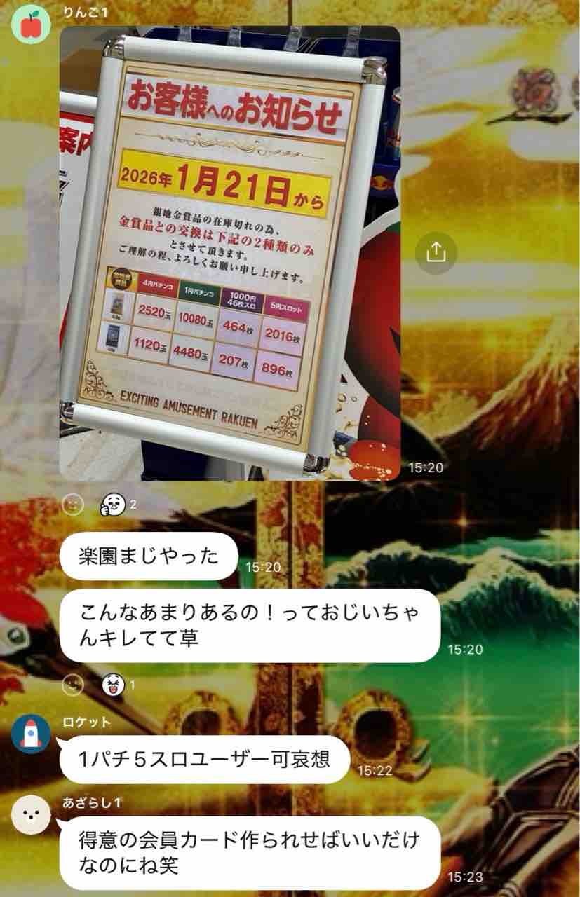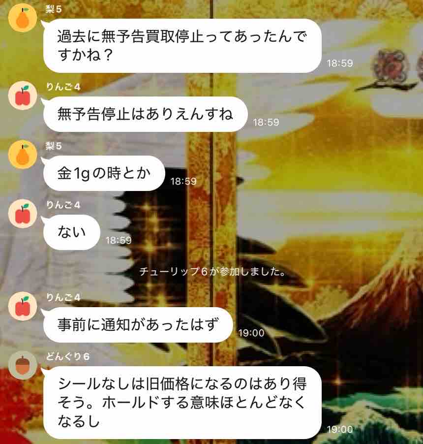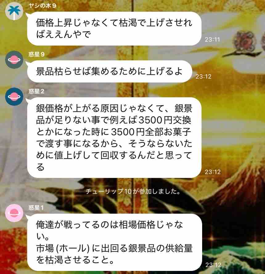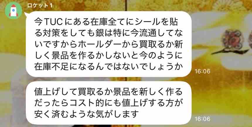 1/19(月)に金銀景品の値上げがあるとの情報が出回る↓