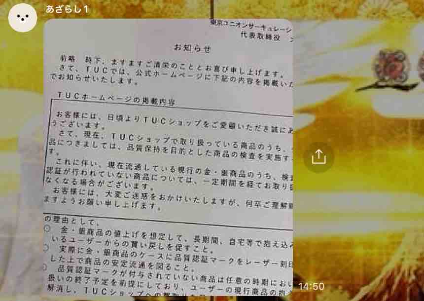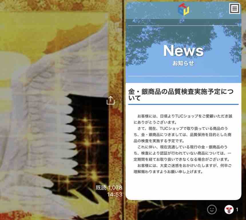 TUCのホームページに景品品質保持検査予定と、偽情報・誤情報に注意するようにとの記載が↓