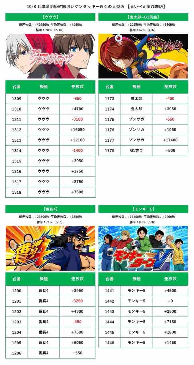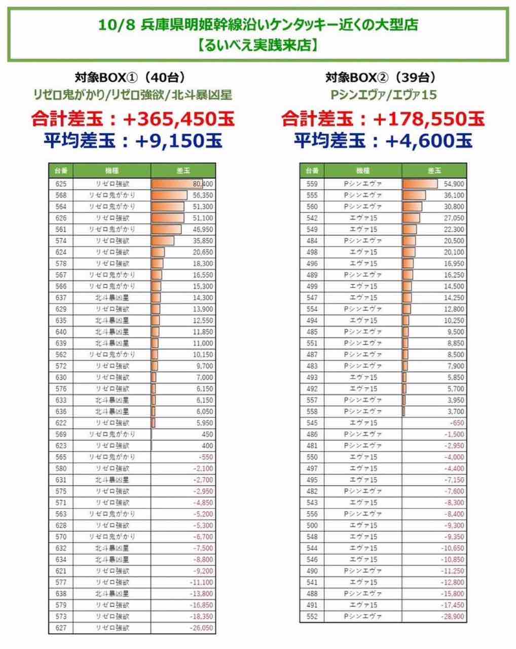 この結果報告を見る限りはパチンコには特に仕掛けはなく、パチスロの方で分岐営業以上(Ttl+58,200枚/Av+165枚)で全台系機種が12機種と、いそまるさん、よしきさん来店と同じ傾向だと思われます。